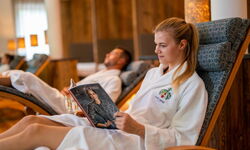 „Wald-Wellness“ Bade- und Sauna-Erlebnis auf ca. 1.000 m² im Innen- und Außenbereich, Hallenbad, Whirlpool, Panorama-Sauna mit Ausblick durch das große Panoramafenster, Natur-Aroma-Dampfbad, Regenduschen, Panorama-Ruheraum mit Kuschelkojen, Infrarotkabine sowie moderne Behandlungsräume für Massagen- und Beautybehandlungen.
