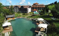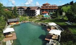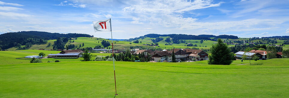 ... mitten im Grünen, umgeben von Allgäuer Bergwelt, finden Sie unser Hotel. Eine große Gartenanlage mit Sonneninseln und Liegestühlen und der Golfplatz Oberstaufen (18-Loch + 9-Loch-Kurzplatz) direkt vor der Haustüre erwarten Sie.